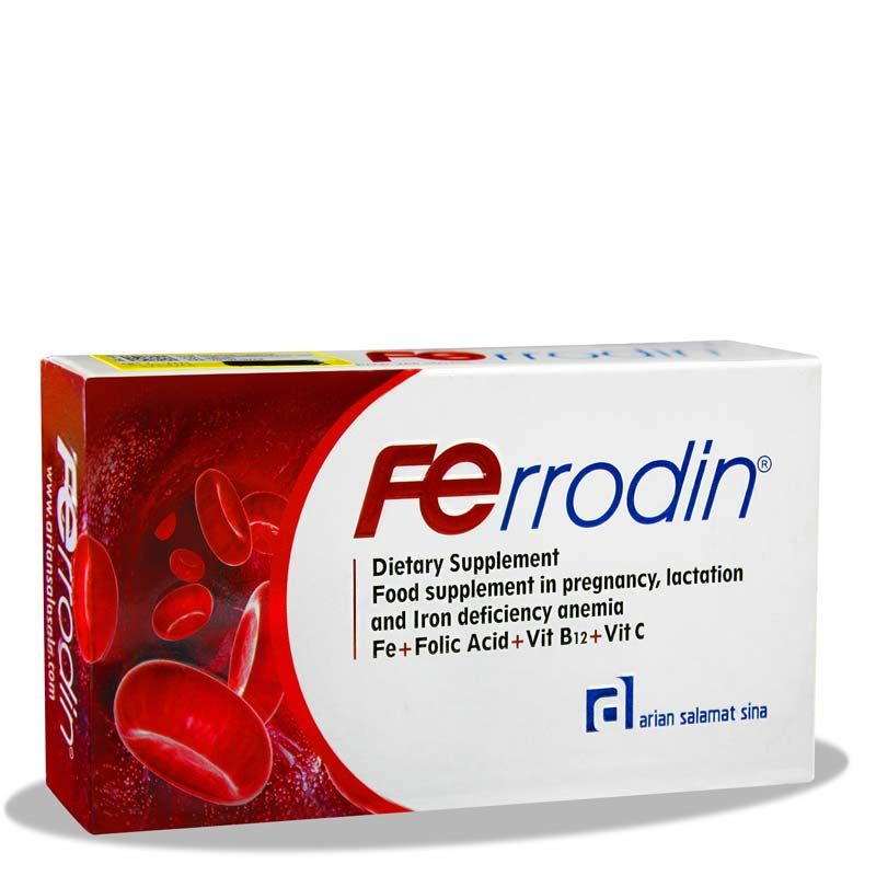 فرودین مکمل حاوی آهن به شکل بیس گلایسینات به میزان ۲۸ میلی گرم، اسید فولیک ۴۰۰ میکروگرم، ب ۱۲ و ویتامین ث برای افزایش جذب آهن است.